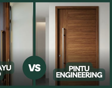 Koleksi pintu kayu olahan teknologi kayu modern untuk stabilitas Sempurna. Berbeda dengan kayu solid konvensional, Pintu Engineering disusun dengan teknik pelapisan serat yang saling silang (cross-grain). Hasilnya? Pintu yang jauh lebih stabil, tidak mudah melengkung, dan tetap memiliki tampilan kayu asli yang elegan.