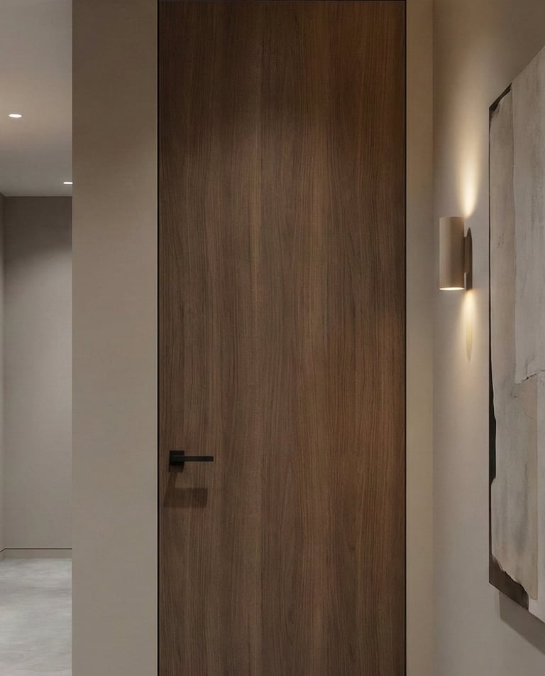 Pintu dalam kamar tidur dengan sambungan presisi dan kayu kering