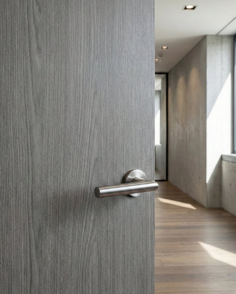 Solusi interior modern dengan beragam pilihan motif dan tekstur. Tahan goresan, mudah dibersihkan, dan menjamin konsistensi warna 100% antar pintu untuk proyek Anda