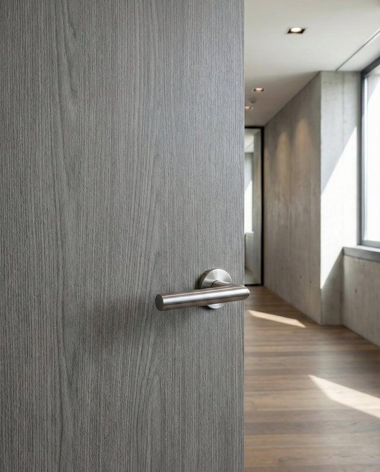 Solusi interior modern dengan beragam pilihan motif dan tekstur. Tahan goresan, mudah dibersihkan, dan menjamin konsistensi warna 100% antar pintu untuk proyek Anda